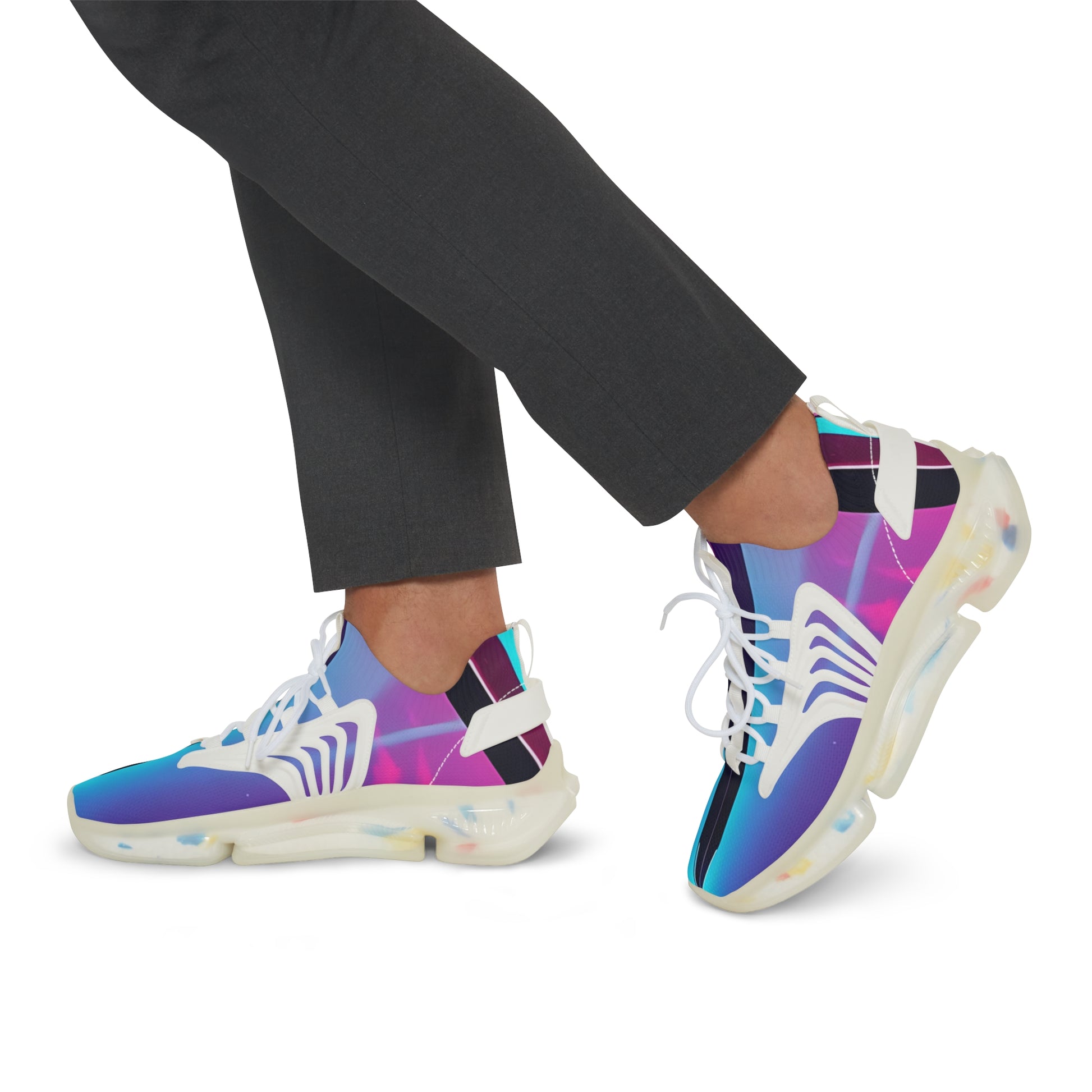 Step into movement with breathable mesh sneakers that blend athleisure comfort and futuristic style. The lightweight EVA sole cushions each step while a deodorant memory foam insole keeps feet cool and fresh during long days. A full‑coverage all-over print on the mesh-knit upper gives a gradient, high-energy look that shifts between blue and purple hues, accented by durable KPU overlays for structure and weather resistance. Lace-up closure and contrasting black or white detailing let you dial the look to your wardrobe. These sneakers feel like freedom — for city streets, quick runs, or when you just want to walk with confident color and cushioned support.