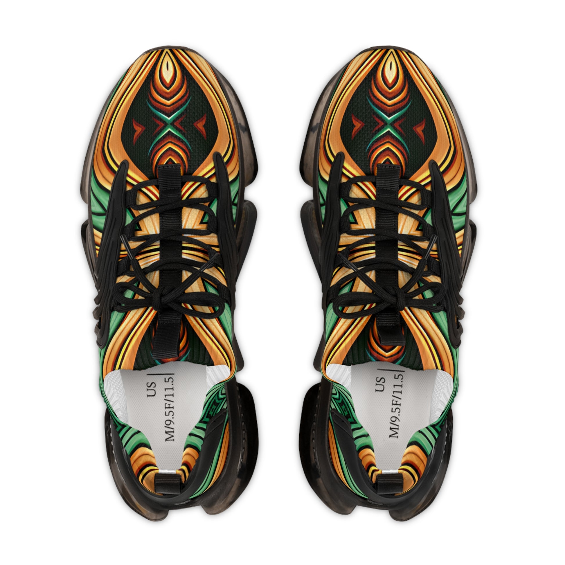 Men's Retro Green & Gold Swirl Athletic Mesh Sneakers