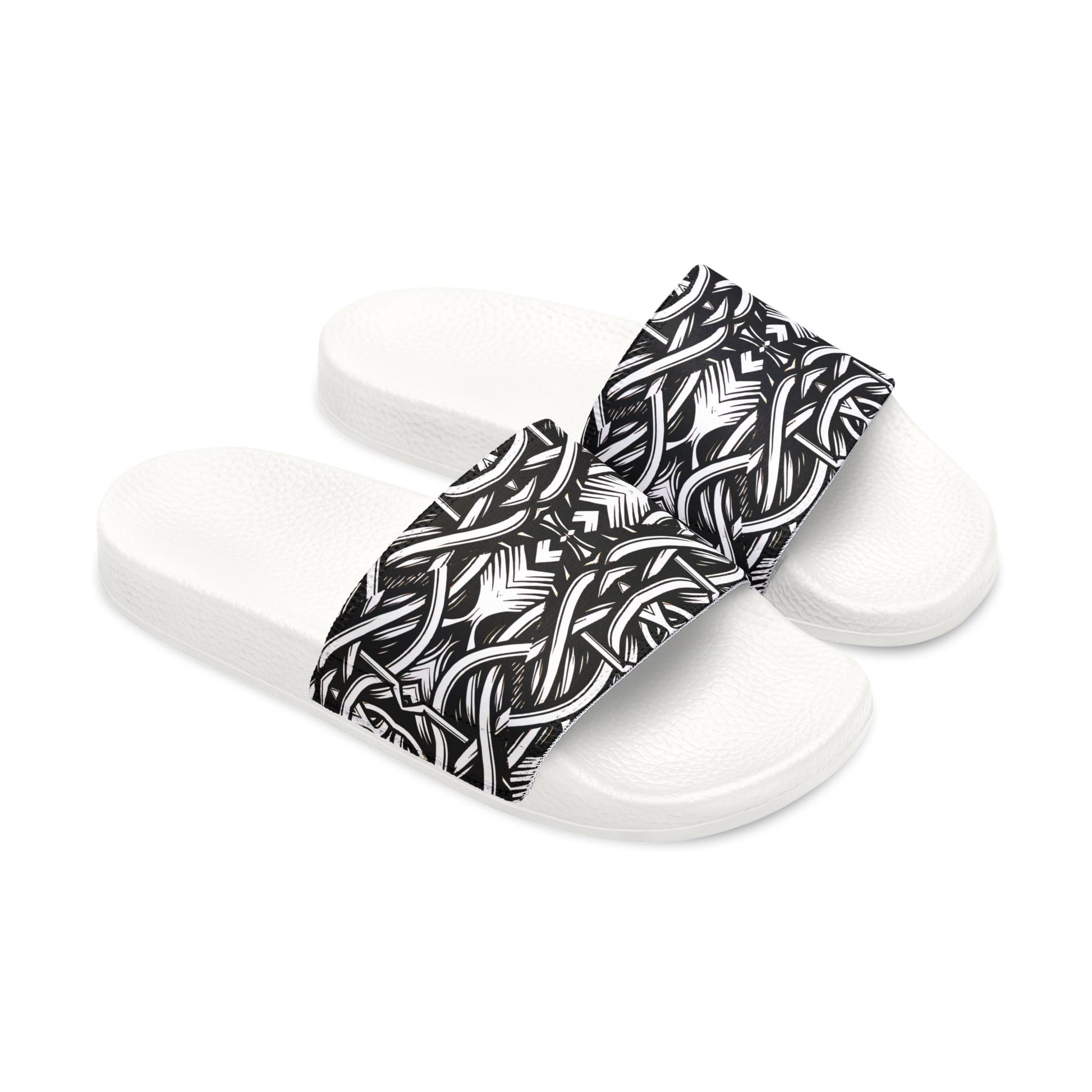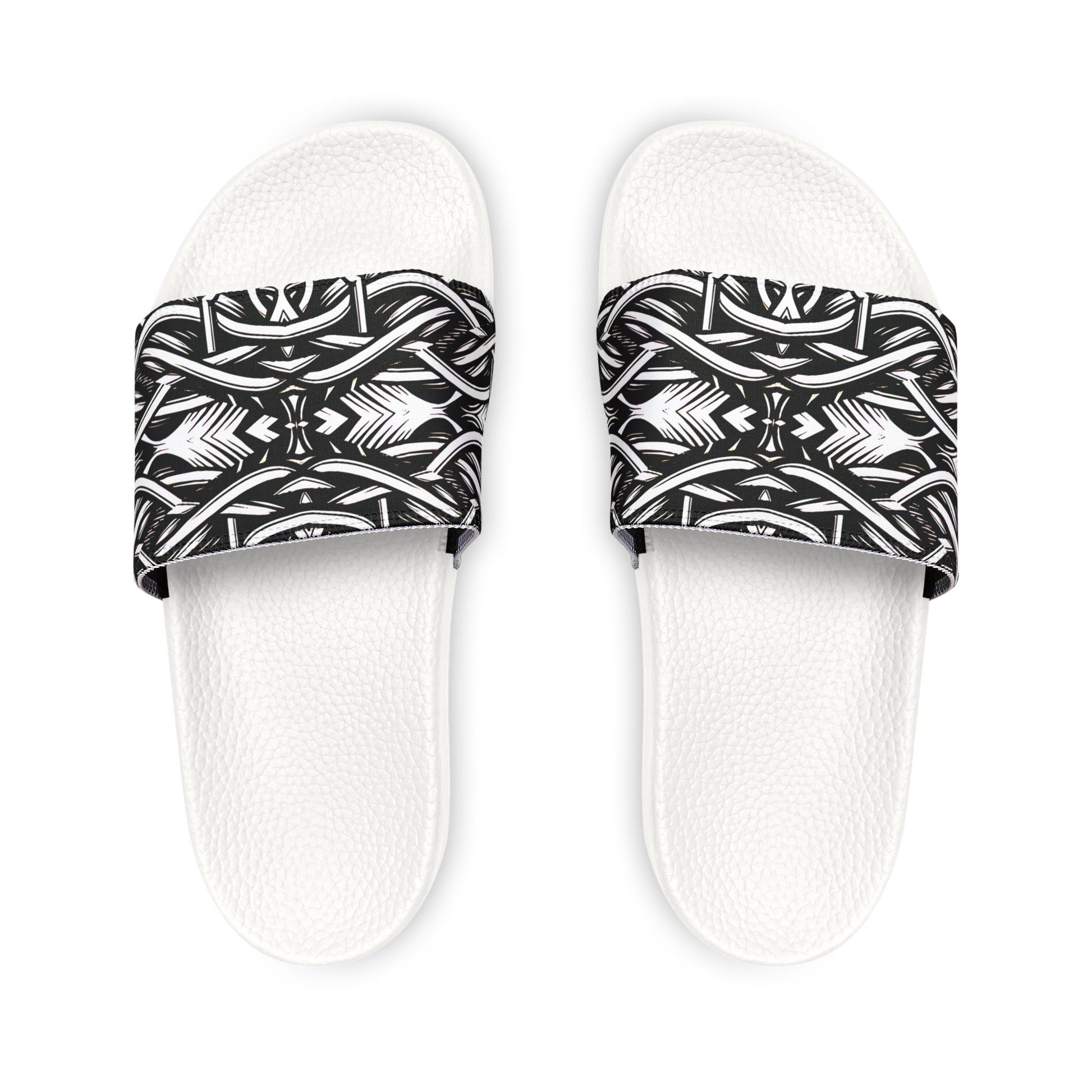 - Printed strap surface in striking black-and-white; outsole available in black or white