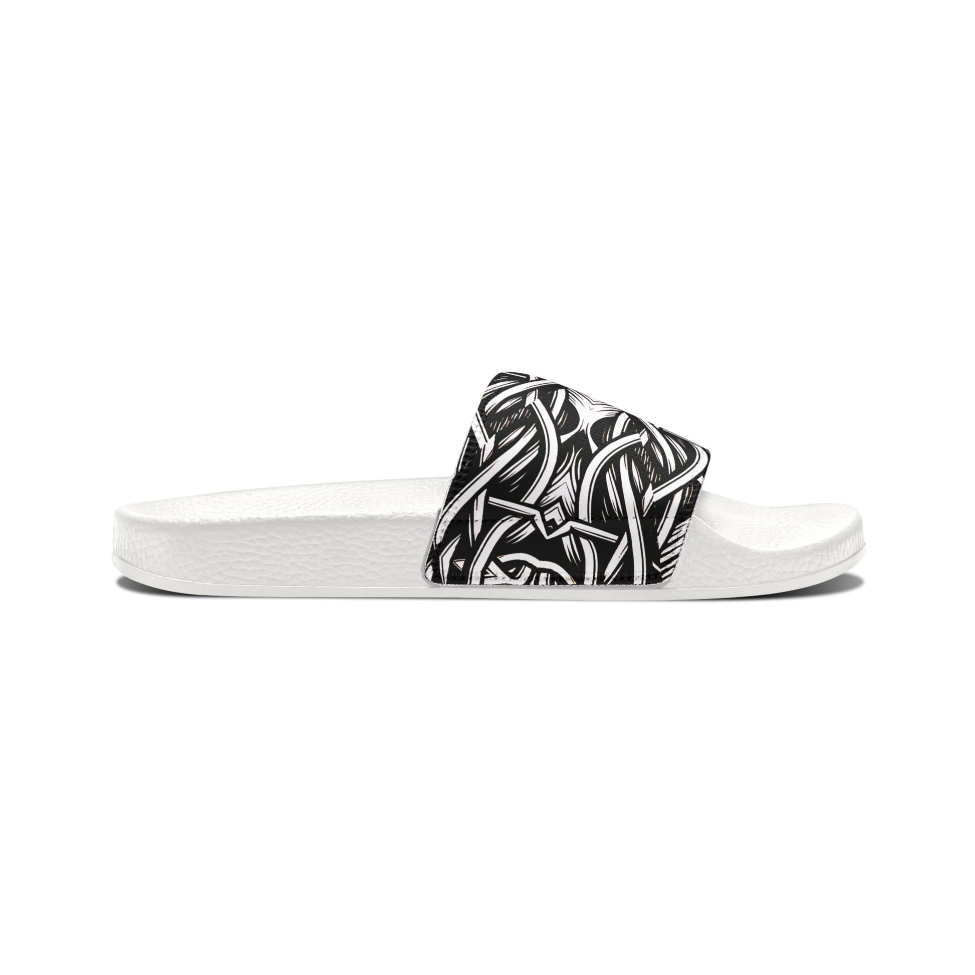 These removable-strap sandals bring relaxed confidence to every step. The cushioned PU foaming outsole follows your foot’s natural curve so mornings at the market or slow afternoons on the porch feel easy and supported. A textured, embossed insole keeps your foot steady, while the quick-drying polyester/neoprene strap snaps on and off when you want to switch up the look. The bold black-and-white printed strap in these photos reads modern and graphic — a subtle statement that pairs with socks or bare feet. Lightweight and durable, they live in rotation for travel days, post-workout downtime, or long walks through the neighborhood.