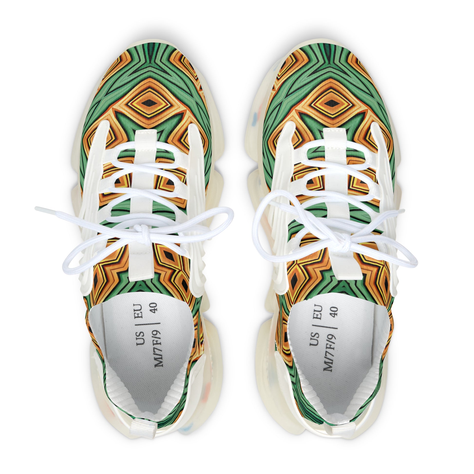 Women's Green Geometric Pattern Athletic Mesh Sneakers