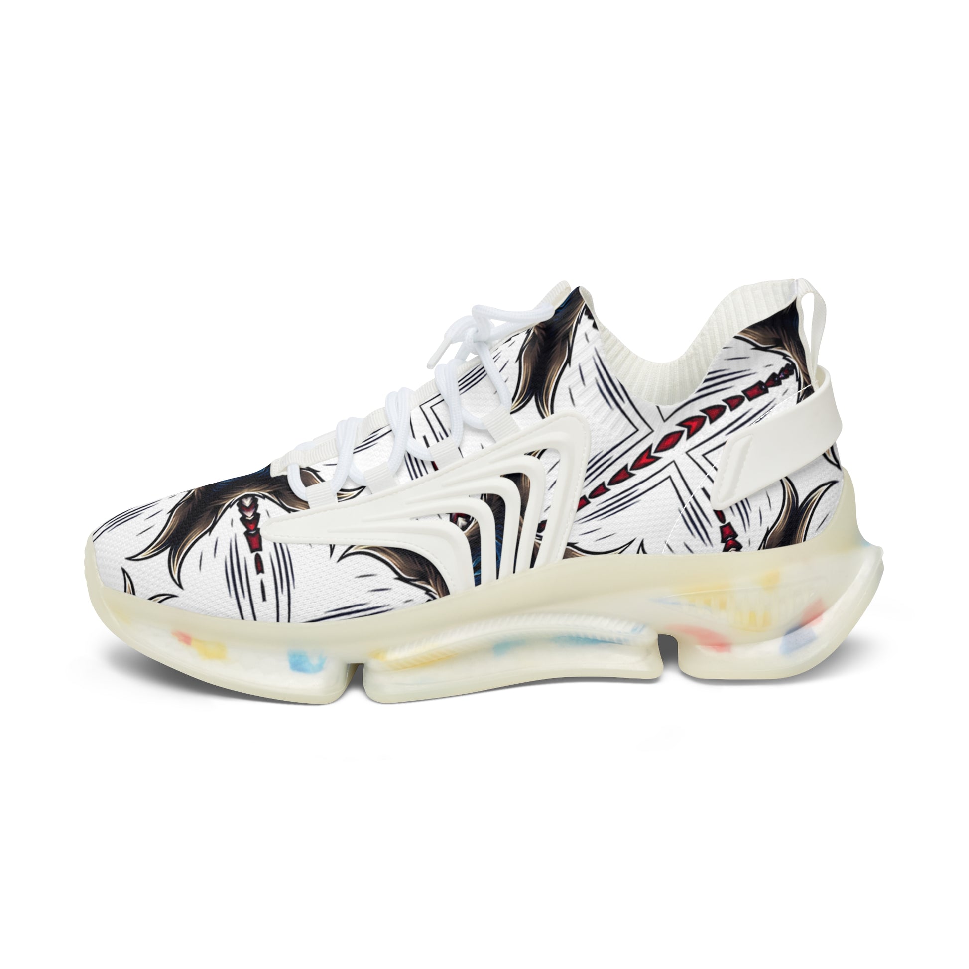 Lightweight, breathable sneakers that blend street-ready attitude with artful patterning. The mesh-knit upper carries an all-over mirrored design in muted ivory, charcoal, and warm brown tones that reads like a modern ink study. A soft deodorant memory-foam insole and EVA shock-absorbing sole keep steps buoyant and cool while TPU/KPU accents add structure and weather-resistant detailing. Lace-up closure and contrasting stitch options (black or white) let you tune the look to your wardrobe. These sneakers sit comfortably between everyday wear and creative statement footwear—subtle from afar, intriguing up close.