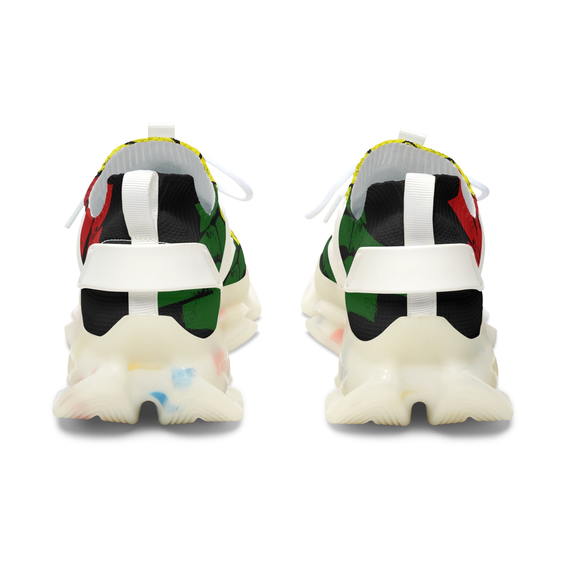 Bright, energetic mesh sneakers that bring bold street style to everyday movement. The lightweight mesh upper features an all-over printed design in vivid red, yellow and green brushstrokes for a hand-painted, urban-art vibe. Inside, breathable deodorant memory-foam insoles cushion every step and help keep feet fresh on longer days. The EVA shock-absorbing sole flexes with your stride while KPU accents add weather-resistant structure and visual contrast. Lace-up closure and clean black or white detailing let these sneakers pair easily with casual and festival-ready looks.