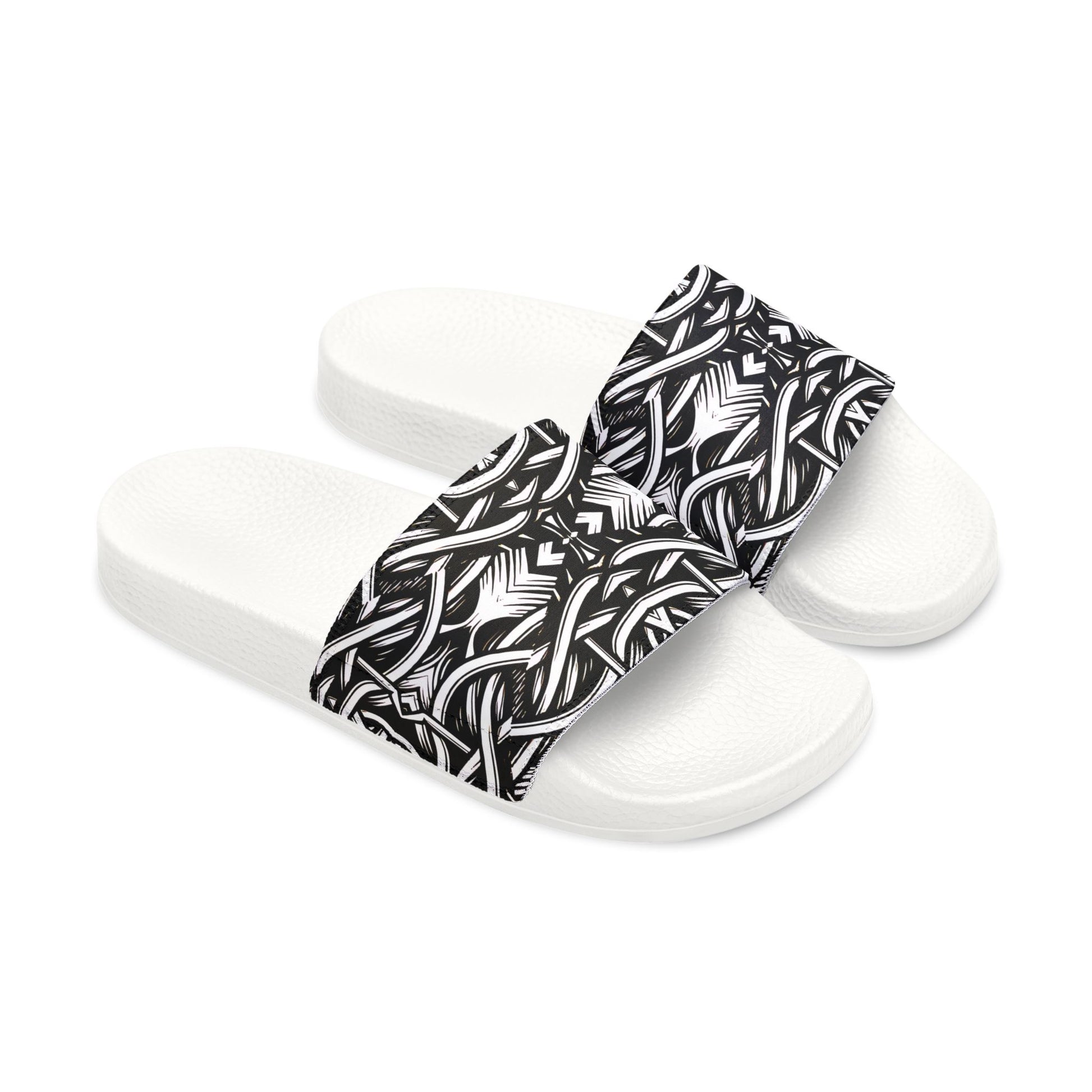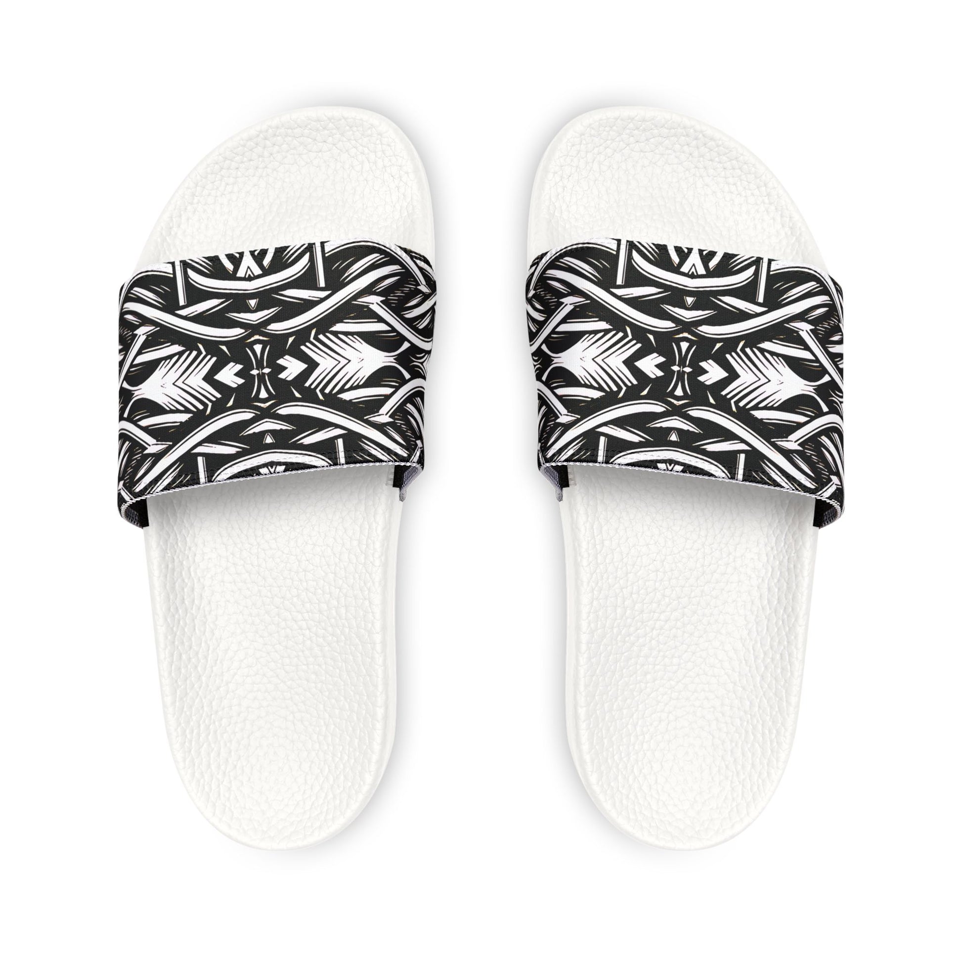 - Available in black or white outsoles; printed strap surface with brand detail on sole